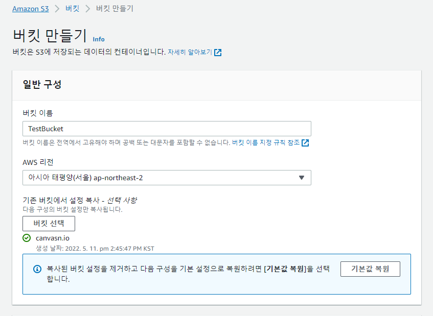 - 일단 퍼블릭 엑세스 차단을 다 풀어준다. 나중에 S3 관련 API를 사용해서 업로드 테스트시 접근 불가로 인한 오류가 있어서 추후 필요한 시점에서 설정 하면된다.