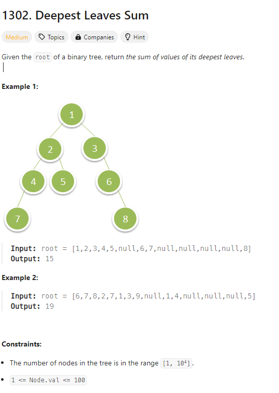 - 사이트 주소: https://leetcode.com/problems/deepest-leaves-sum/description/